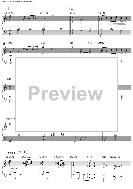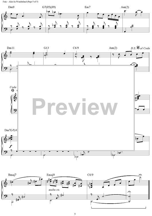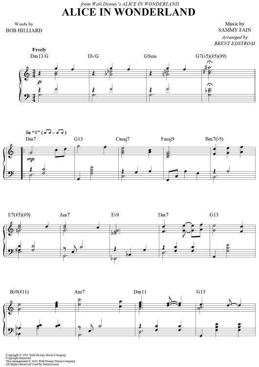 Digital Sheet Music for Alice In Wonderland by Sammy Fain, Bob Hilliard, Brent Edstrom scored for Piano Solo; id:458705