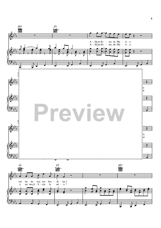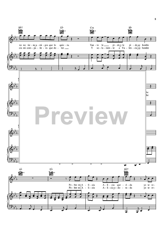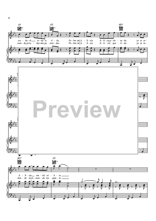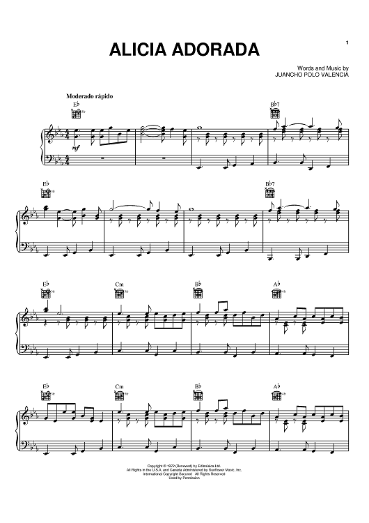 Digital Sheet Music for Alicia Adorada by Juancho Polo Valencia scored for Piano/Vocal/Chords; id:370440