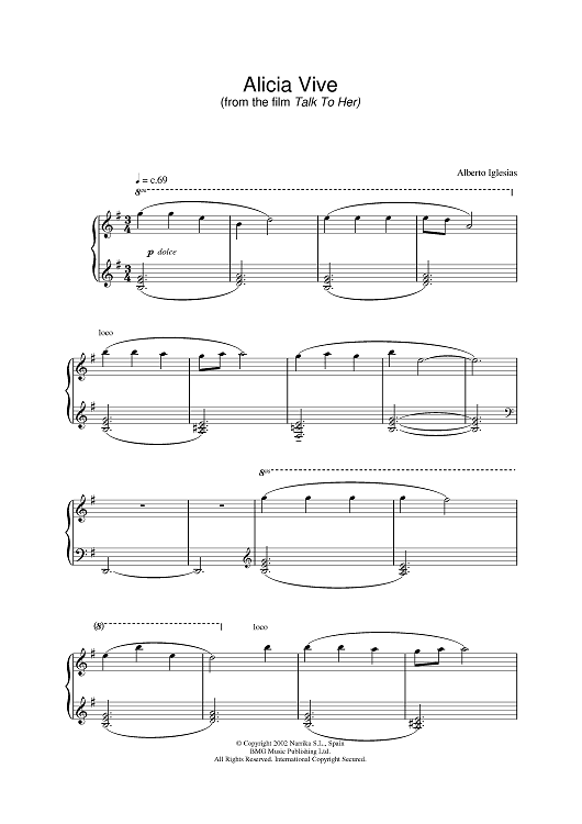 Digital Sheet Music for Alicia Vive by Alberto Iglesias, Talk To Her scored for Piano; id:382891