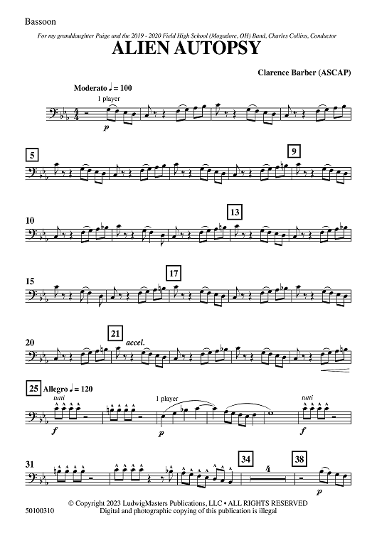 "Alien Autopsy - Bassoon" Sheet Music by Clarence Barber