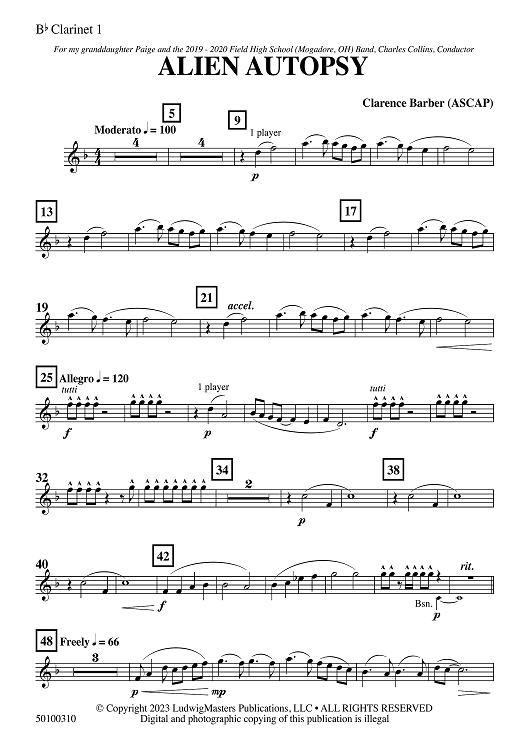 "Alien Autopsy - Bb Clarinet 1" Sheet Music by Clarence Barber