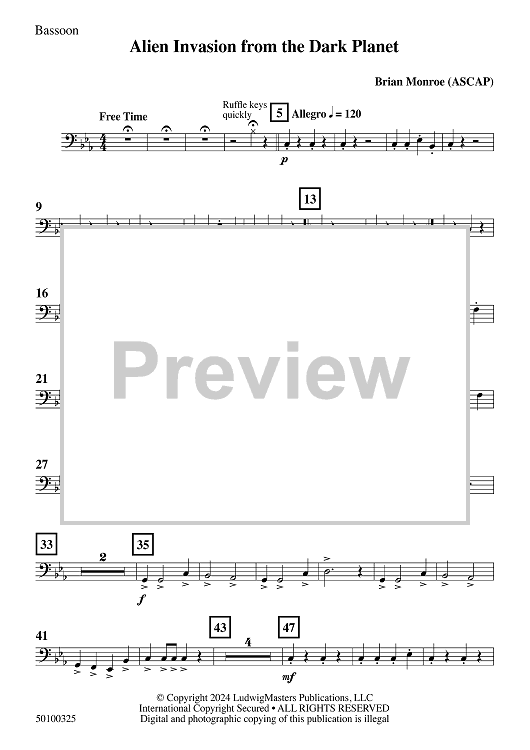 "Alien Invasion from the Dark Planet - Bassoon" Sheet Music by Brian Monroe