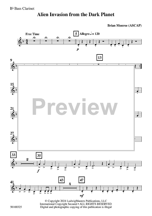 "Alien Invasion from the Dark Planet - Bb Bass Clarinet" Sheet Music by Brian Monroe