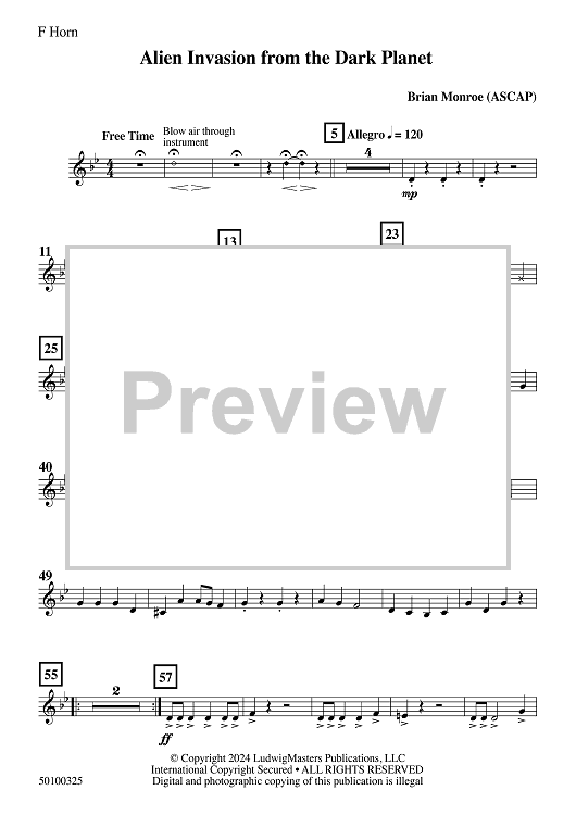 "Alien Invasion from the Dark Planet - F Horn" Sheet Music by Brian Monroe