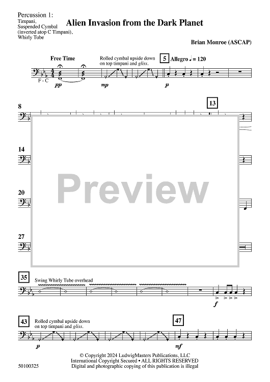 "Alien Invasion from the Dark Planet - Percussion 1" Sheet Music by Brian Monroe