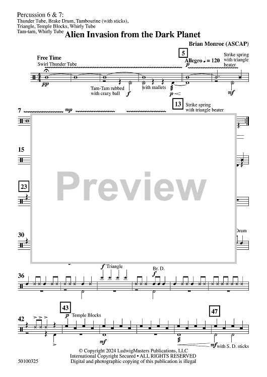 "Alien Invasion from the Dark Planet - Percussion 6 & 7" Sheet Music by Brian Monroe
