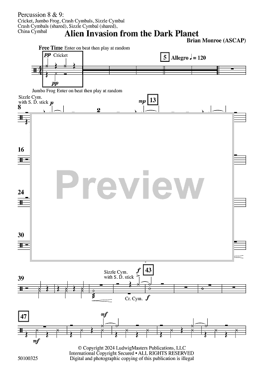 "Alien Invasion from the Dark Planet - Percussion 8 & 9" Sheet Music by Brian Monroe