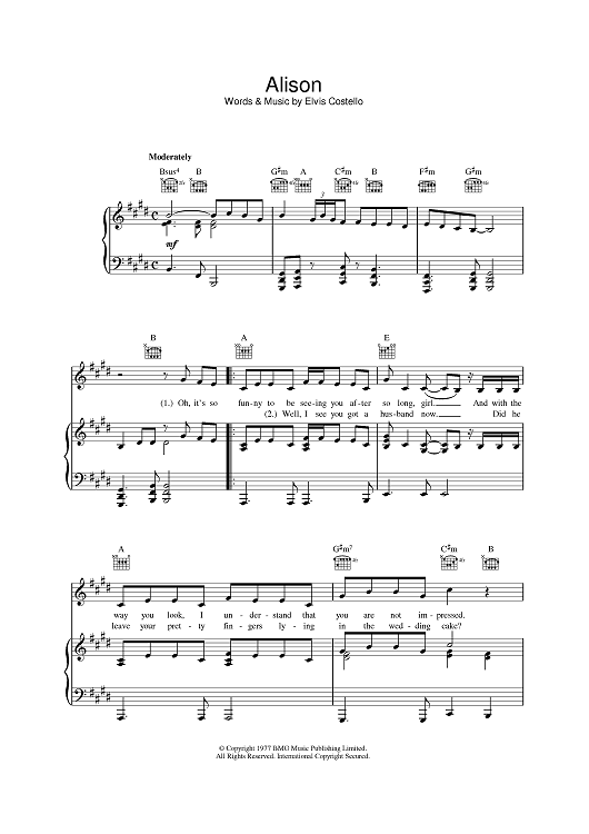 "Alison" Sheet Music by Elvis Costello