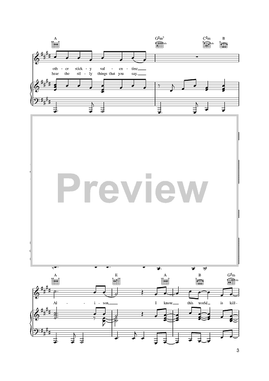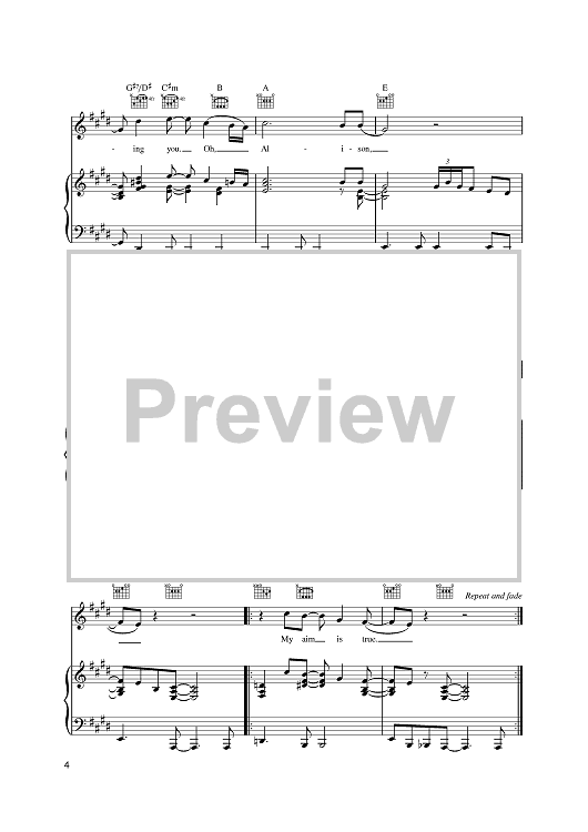 Digital Sheet Music for Alison by Elvis Costello scored for Piano/Vocal/Chords; id:396307