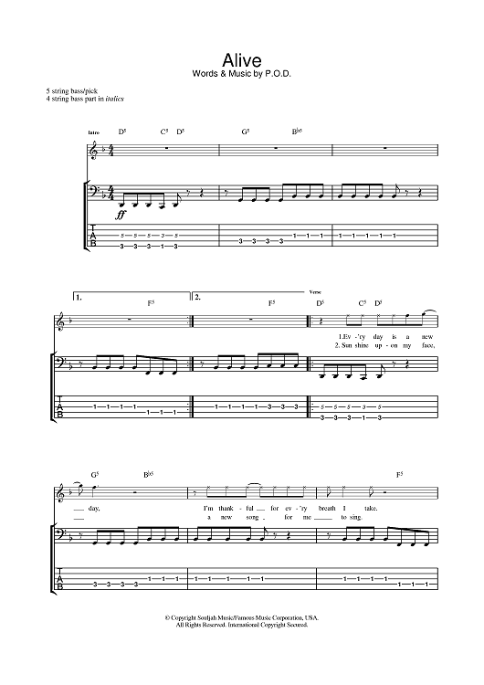 Digital Sheet Music for Alive by Marcos, Sonny, Traa, Payable On Death scored for Bass Tab; id:377585