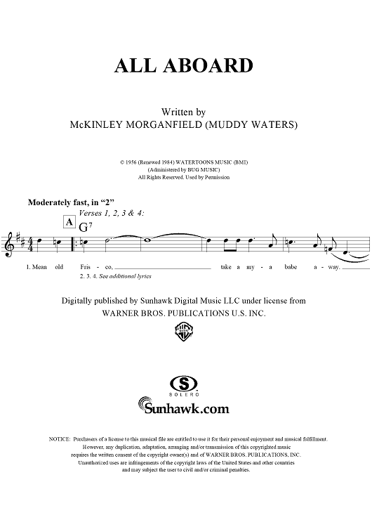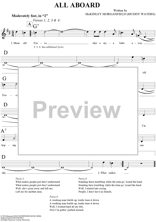 Digital Sheet Music for All Aboard by Muddy Waters scored for Lead Sheet; id:290776
