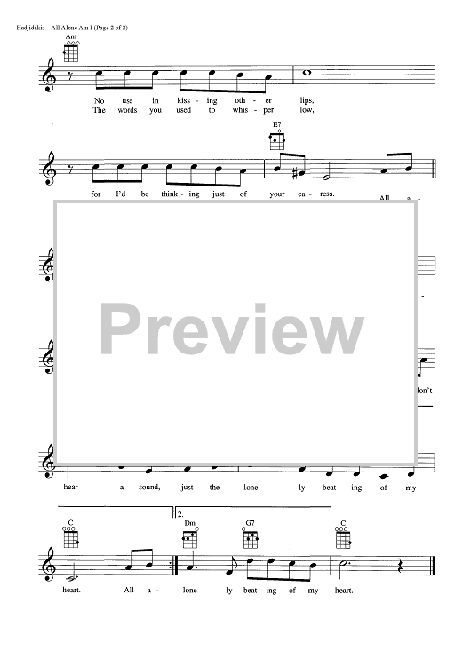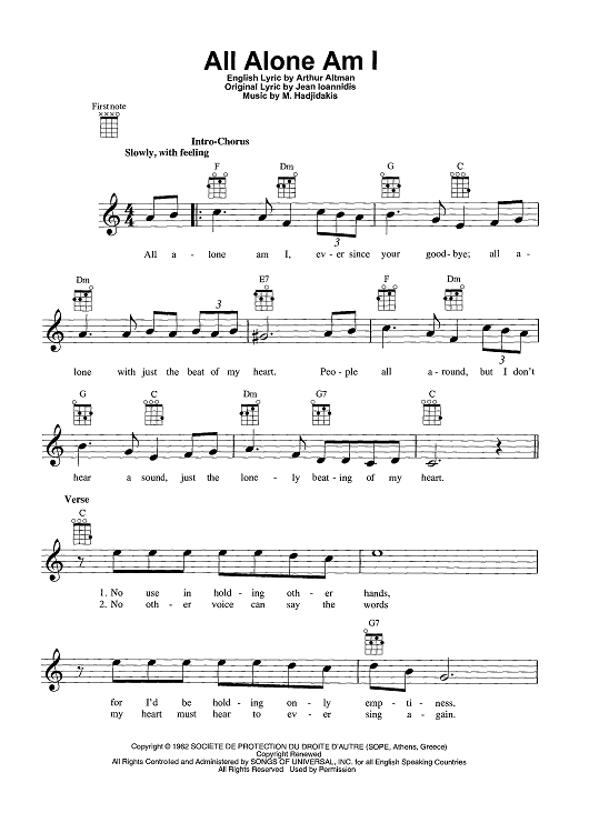 Digital Sheet Music for All Alone Am I by Manos Hadjidakis, Arthur Altman, Brenda Lee, Jean Ioannidis scored for Ukulele/Vocal; id:448978