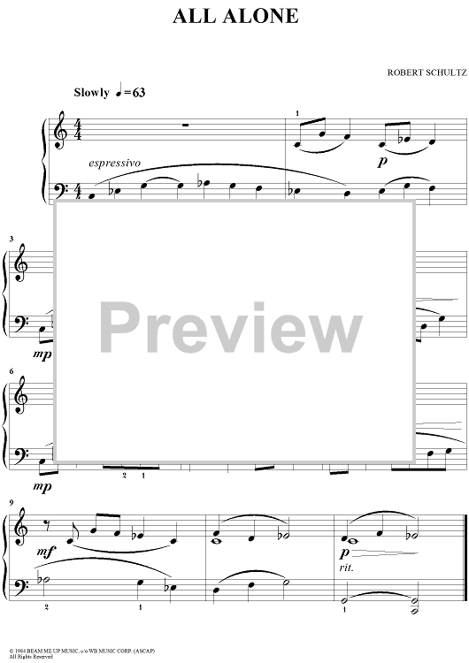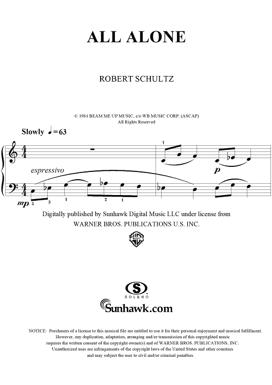Digital Sheet Music for All Alone by Robert Schultz scored for Easy Piano; id:283280