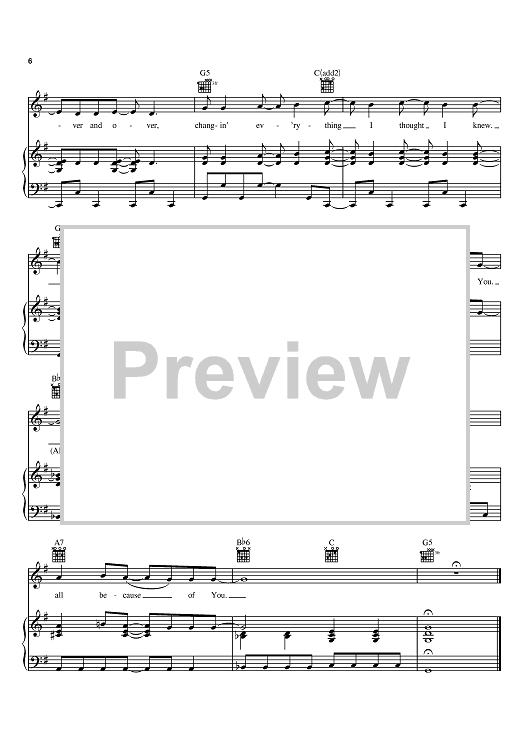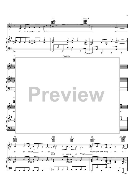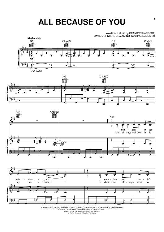 Digital Sheet Music for All Because Of You by David Johnson, Brandon Hargest, Jump5, Brad Minor scored for Piano/Vocal/Chords; id:372999