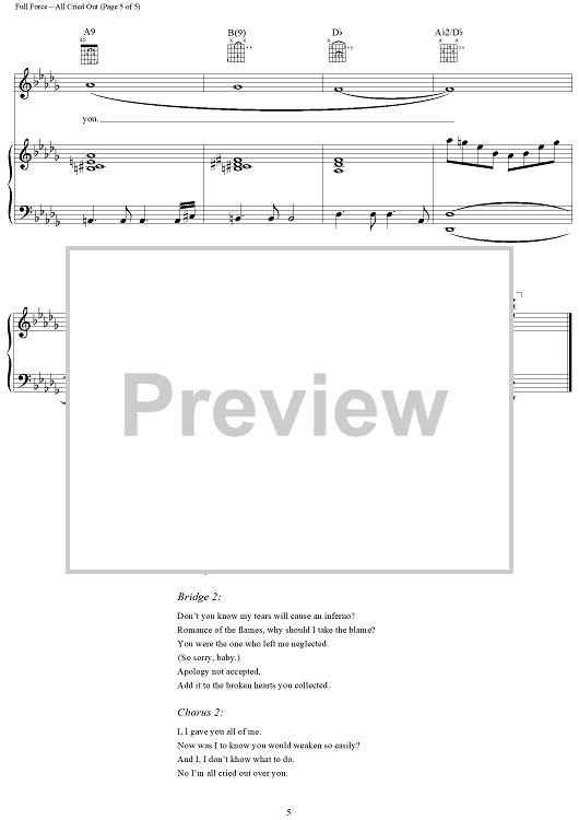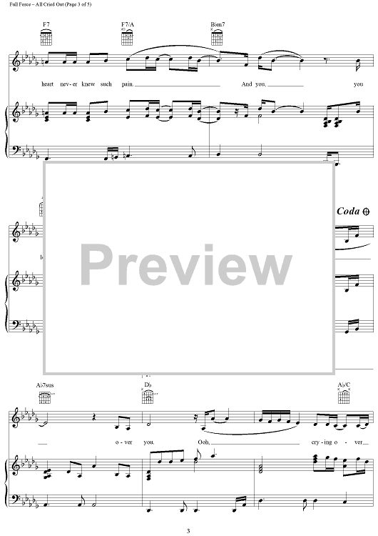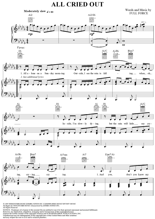 Digital Sheet Music for All Cried Out by Allure, Full Force scored for Piano/Vocal/Chords; id:112197