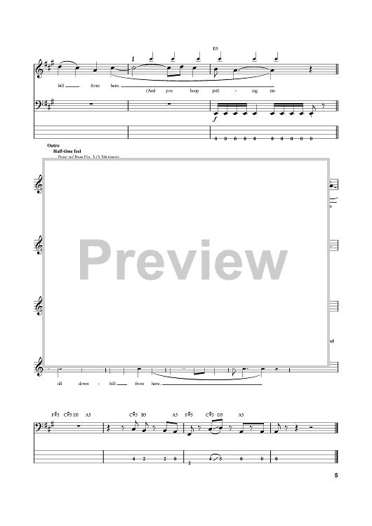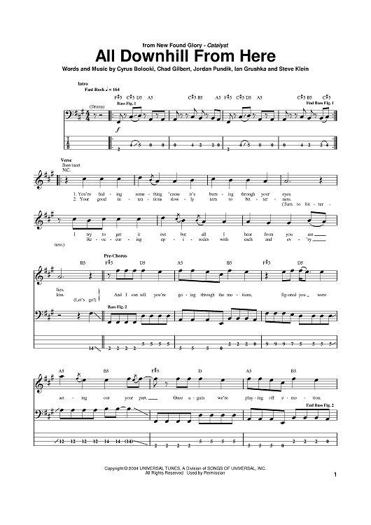 Digital Sheet Music for All Downhill From Here by New Found Glory, Cyrus Bolooki, Chad Gilbert, Ian Grushka, Steve Klein, Jordan Pundik scored for Bass Tab; id:380329