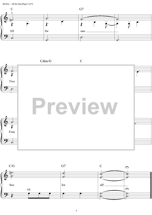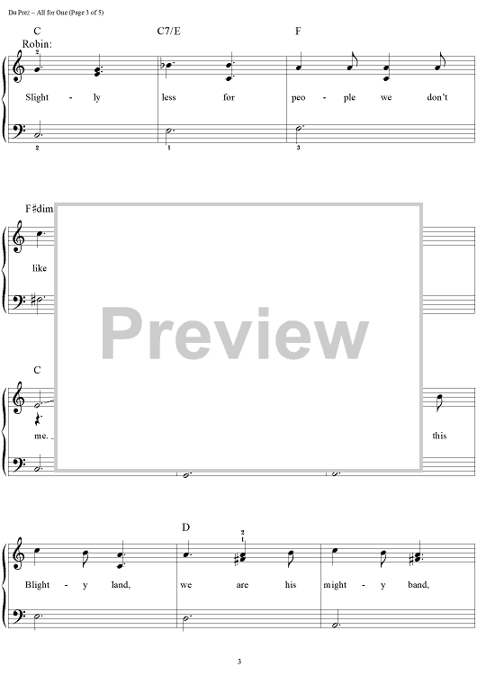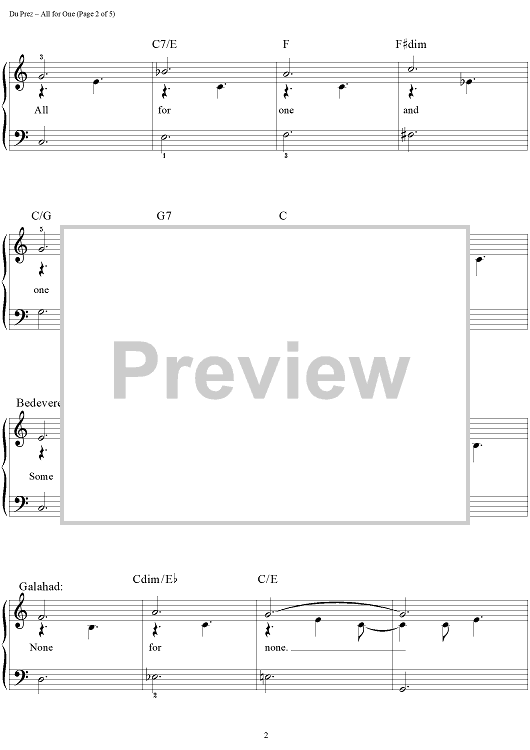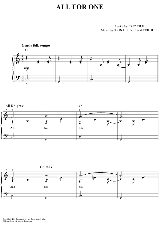 Digital Sheet Music for All for One by Eric Idle, John Du Prez scored for Easy Piano/Vocal/Chords; id:390112