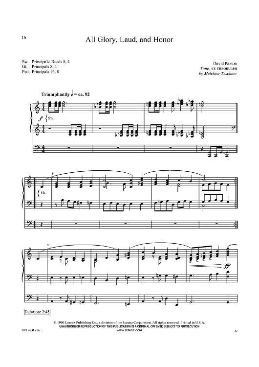 Digital Sheet Music for All Glory, Laud, and Honor by Melchior Teschner, David Paxton scored for Organ Solo; id:433958
