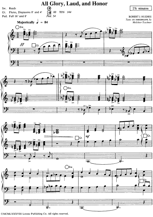 Digital Sheet Music for All Glory, Laud, and Honor by Robert J. Hughes scored for Organ Solo; id:501403