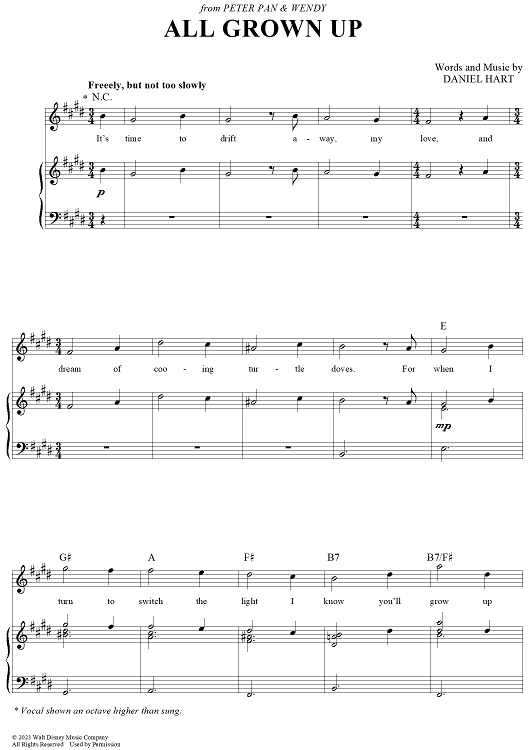 "All Grown Up - from Peter Pan & Wendy" Sheet Music by Daniel Hart
