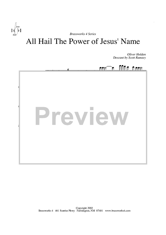Digital Sheet Music for All Hail the Power of Jesus' Name - Descant in C BC by Oliver Holden, Scott A. Ramsey scored for Brass Quartet with Optional Descant; id:317114