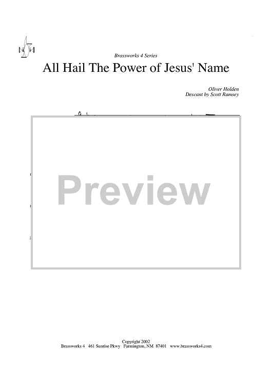 Digital Sheet Music for All Hail the Power of Jesus' Name - Horn in F by Oliver Holden, Scott A. Ramsey scored for Brass Quartet with Optional Descant; id:317118