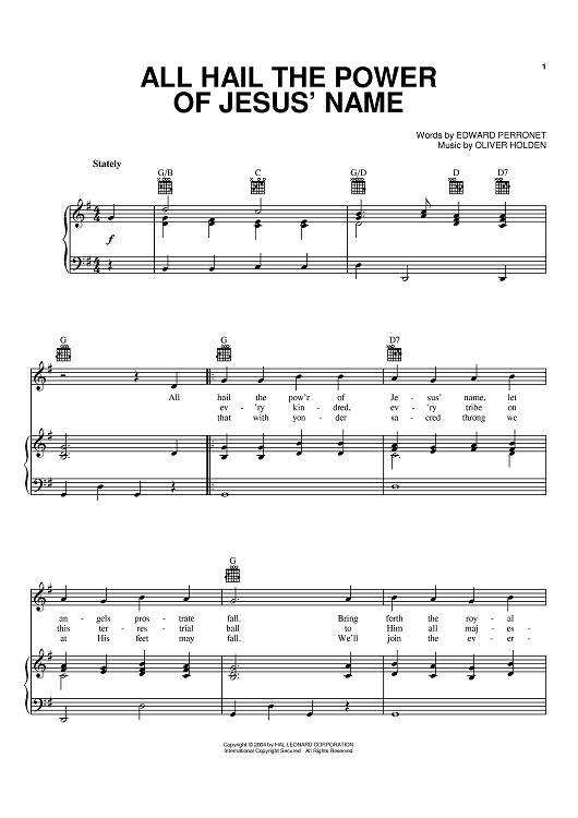 Digital Sheet Music for All Hail The Power Of Jesus' Name by Michael W. Smith, Mahalia Jackson, Oliver Holden, Edward Perronet, Bill Gaither, John Rippon scored for Piano/Vocal/Chords; id:373666