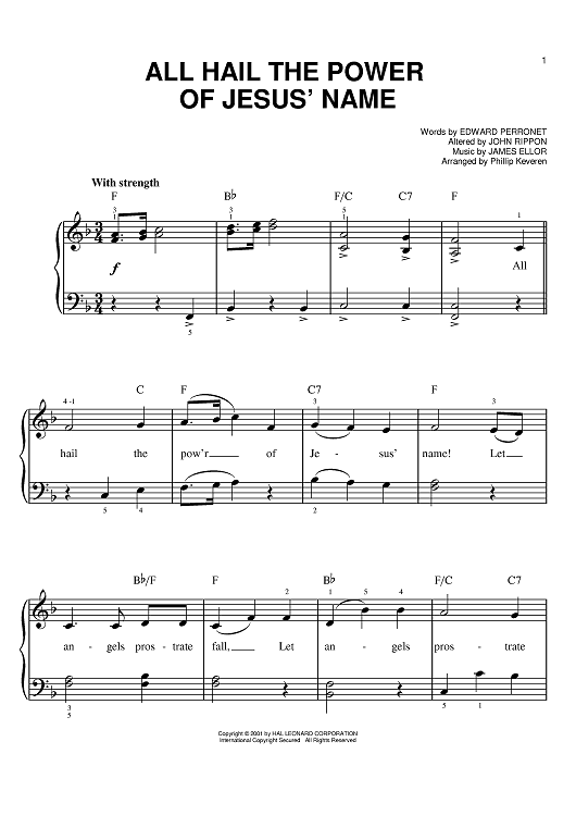 Digital Sheet Music for All Hail The Power Of Jesus' Name by James Ellor, Edward Perronet, Phillip Keveren, John Rippon scored for Easy Piano; id:396481