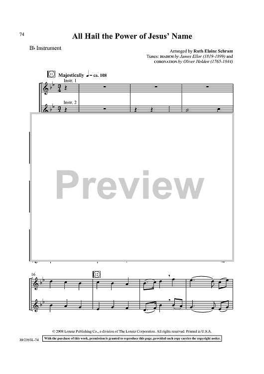 Digital Sheet Music for All Hail the Power of Jesus’ Name by Ruth Elaine Schram, Oliver Holden, James Ellor scored for Keyboard, C Instrument, Bb Instrument; id:433440
