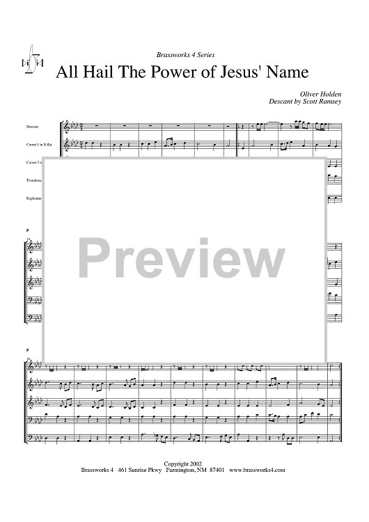 Digital Sheet Music for All Hail the Power of Jesus' Name - Score by Oliver Holden, Scott A. Ramsey scored for Brass Quartet with Optional Descant; id:317112