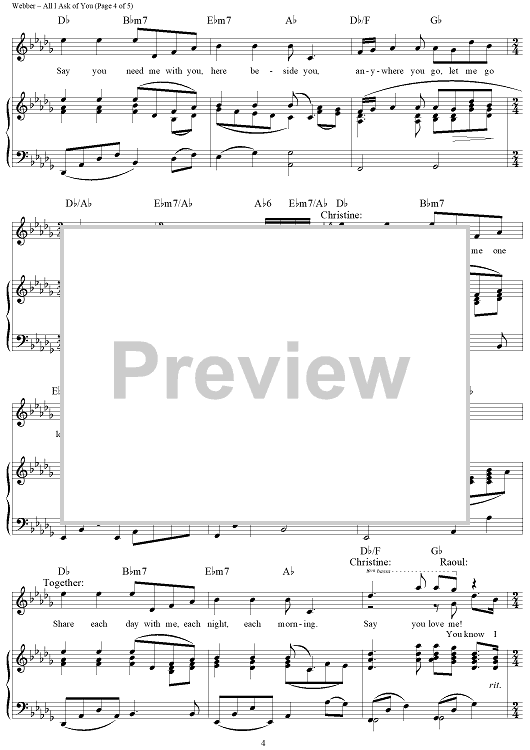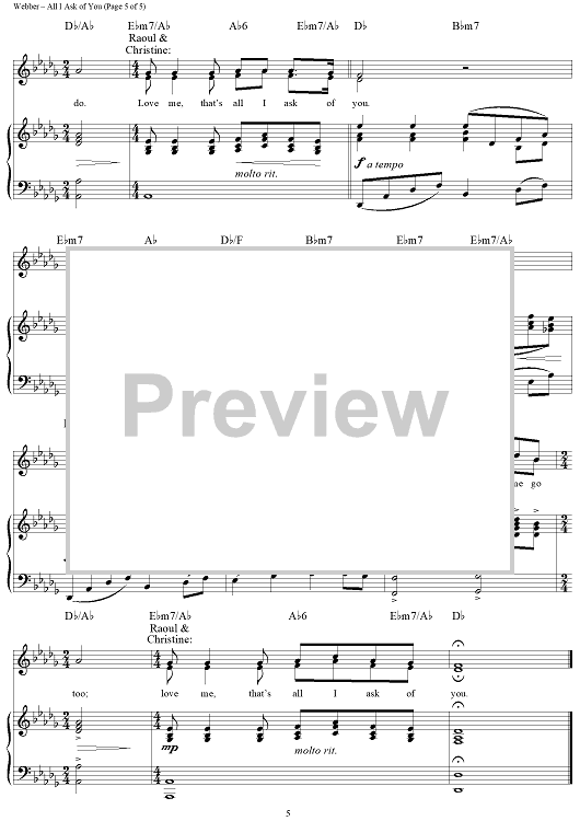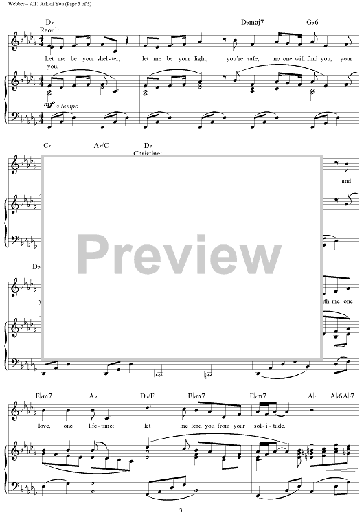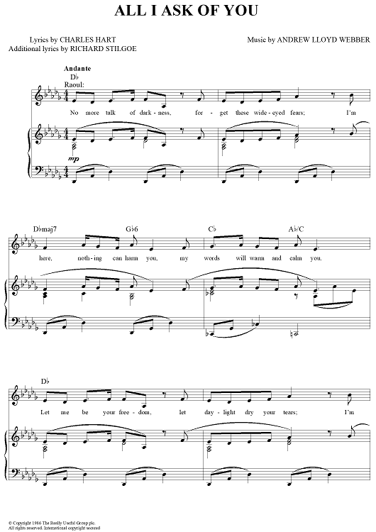 Digital Sheet Music for All I Ask Of You by Andrew Lloyd Webber, Charles Hart, Richard Stilgoe, Roger Day, Barbra Streisand scored for Piano/Vocal/Chords; id:365456