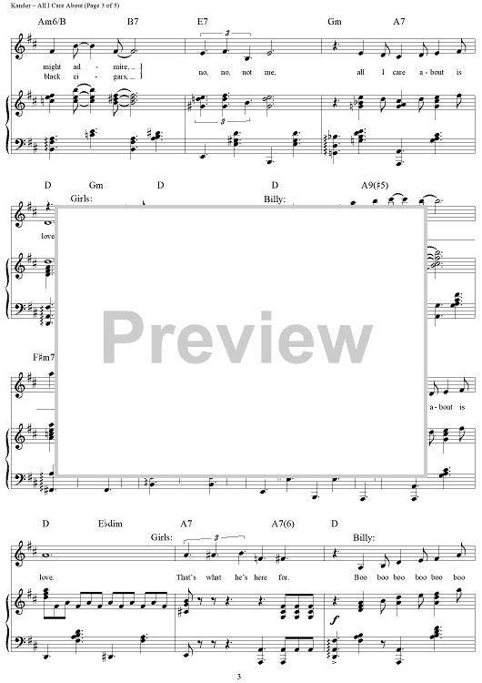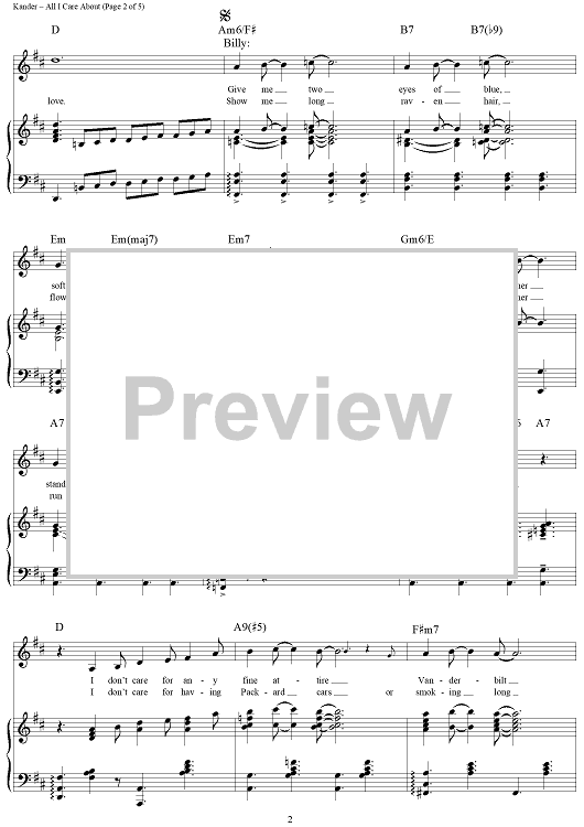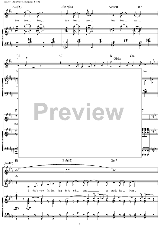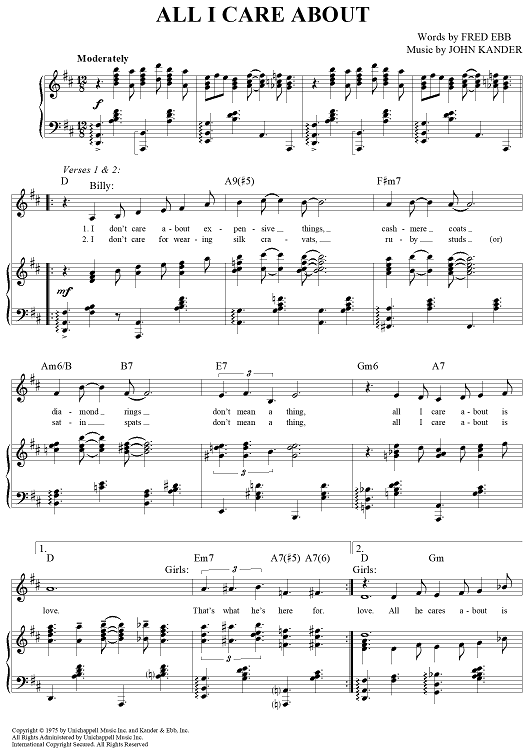 Digital Sheet Music for All I Care About by John Kander, Fred Ebb scored for Piano/Vocal/Chords; id:295071