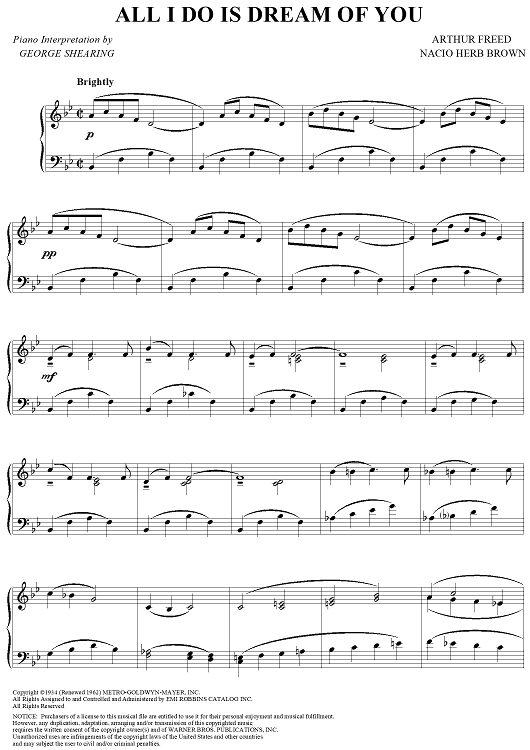 Digital Sheet Music for All I Do Is Dream of You by Nacio Herb Brown, George Shearing, Arthur Freed scored for Piano Solo; id:115778