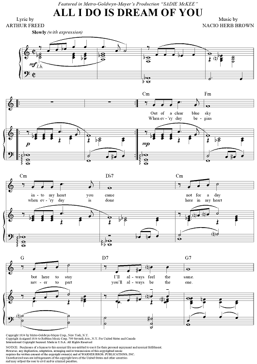 Digital Sheet Music for All I Do Is Dream of You by Nacio Herb Brown, George Shearing, Arthur Freed, Michael Buble scored for Piano/Vocal/Chords; id:320944
