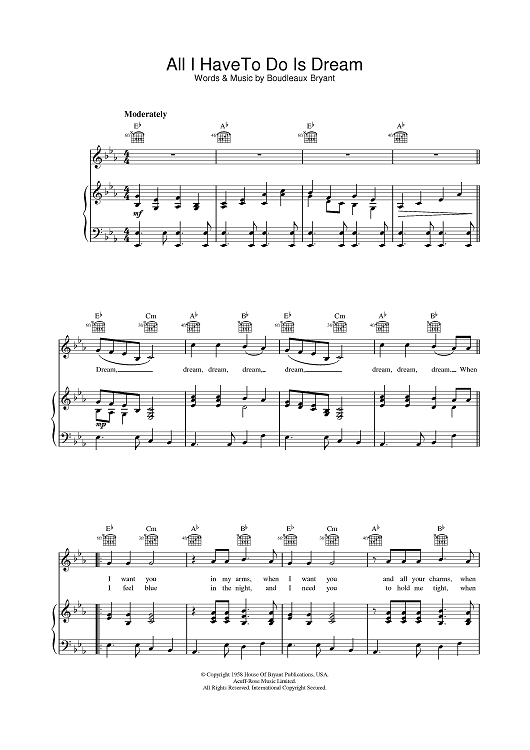 Digital Sheet Music for All I Have To Do Is Dream by The Everly Brothers scored for Piano/Vocal/Chords; id:375546