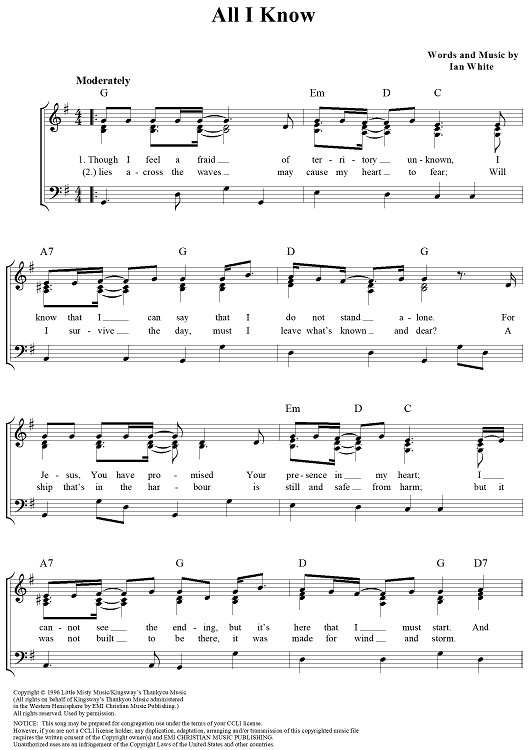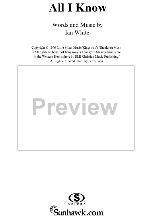 Digital Sheet Music for All I Know by Ian White scored for Piano/Vocal/Chords; id:120171