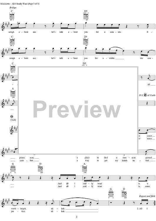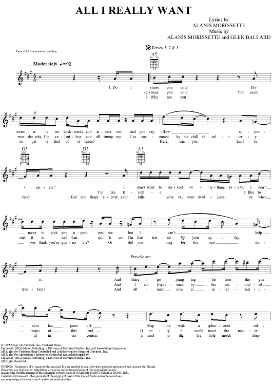Digital Sheet Music for All I Really Want by Glen Ballard, Alanis Morissette scored for Easy Guitar/Chords; id:285788