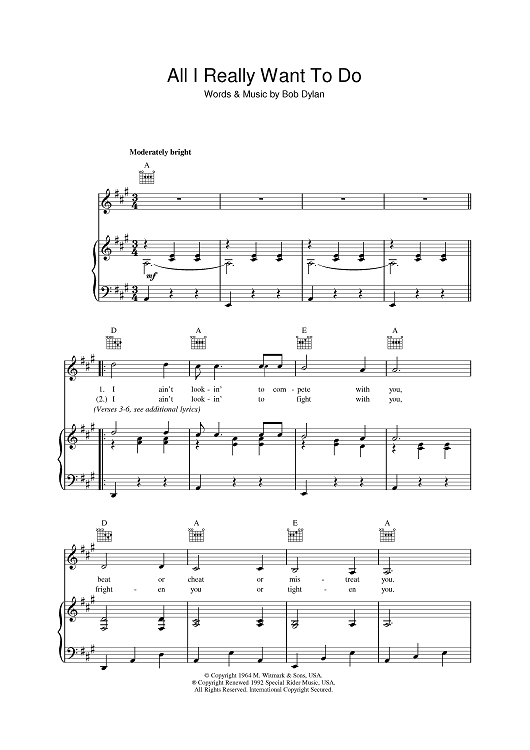 "All I Really Want To Do" Sheet Music by Bob Dylan