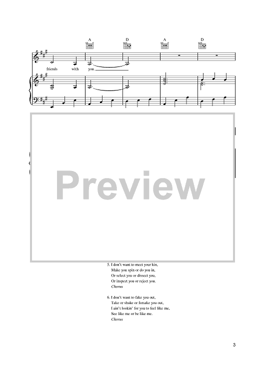 Digital Sheet Music for All I Really Want To Do by Bob Dylan scored for Piano/Vocal/Chords; id:389974