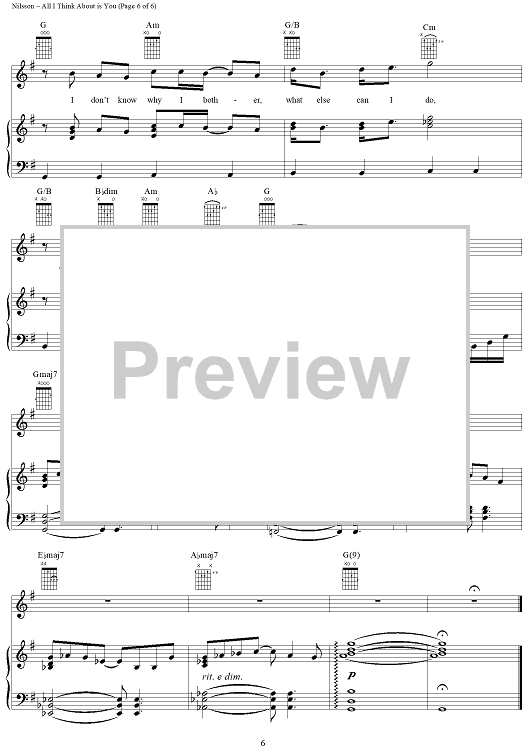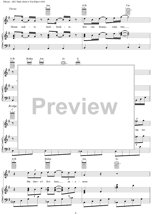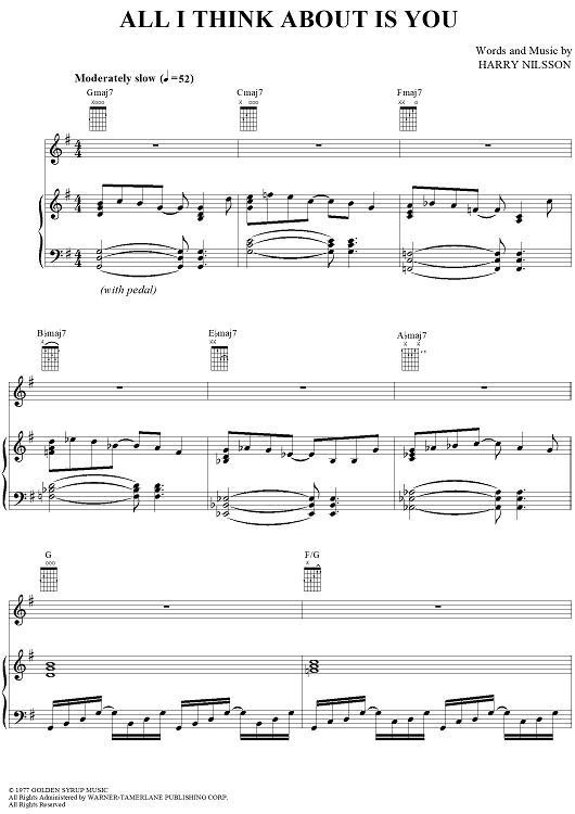 Digital Sheet Music for All I Think About is You by Harry Nilsson, Nilsson scored for Piano/Vocal/Chords; id:253439