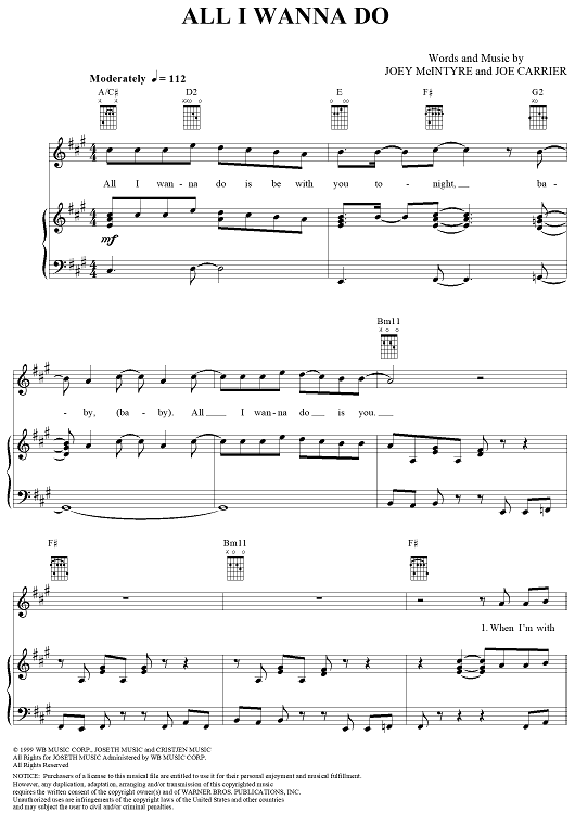 Digital Sheet Music for All I Wanna Do by Joey McIntyre, Joe Carrier scored for Piano/Vocal/Chords; id:240914