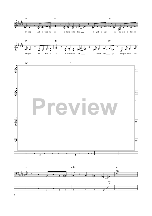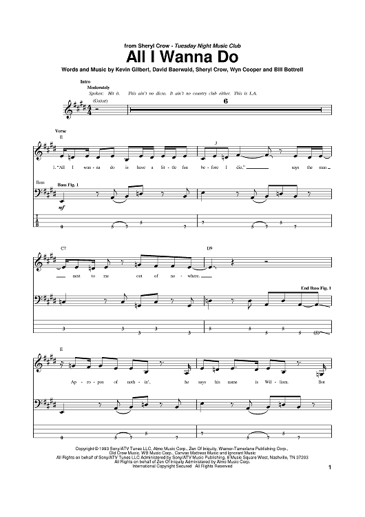 Digital Sheet Music for All I Wanna Do by Sheryl Crow, Kevin Gilbert, Bill Bottrell, David Baerwald, Wyn Cooper scored for Bass Tab; id:383049