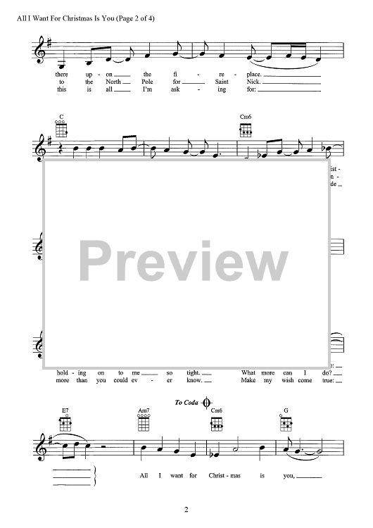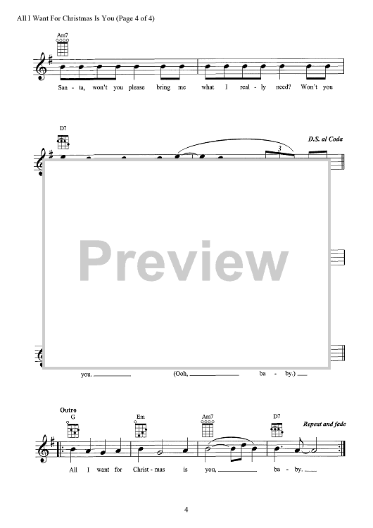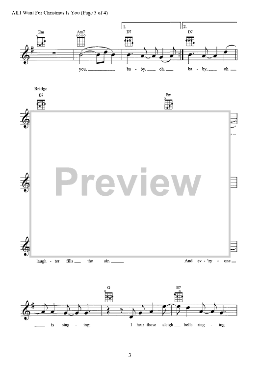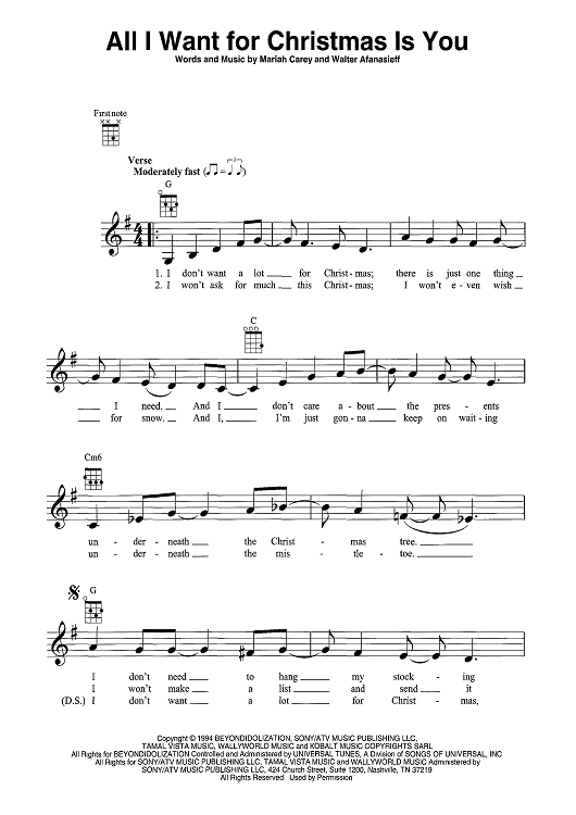 Digital Sheet Music for All I Want For Christmas Is You by Mariah Carey, Wally Afanasieff scored for Ukulele/Vocal; id:467761