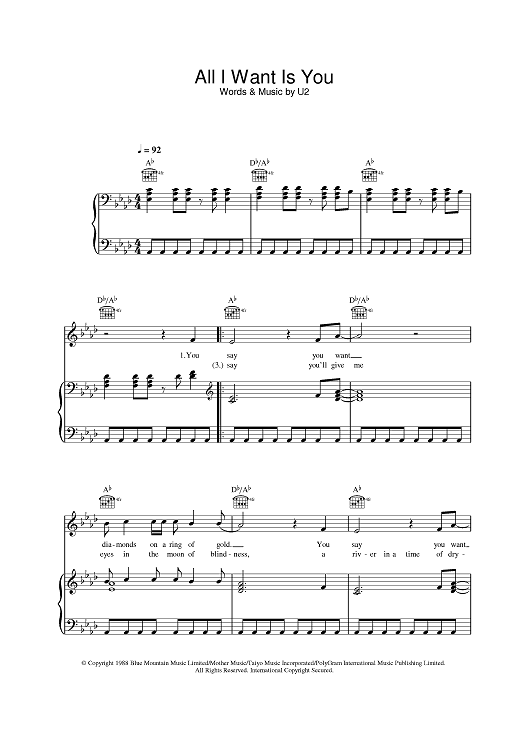 Digital Sheet Music for All I Want Is You by U2, Bono scored for Piano/Vocal/Chords; id:385126
