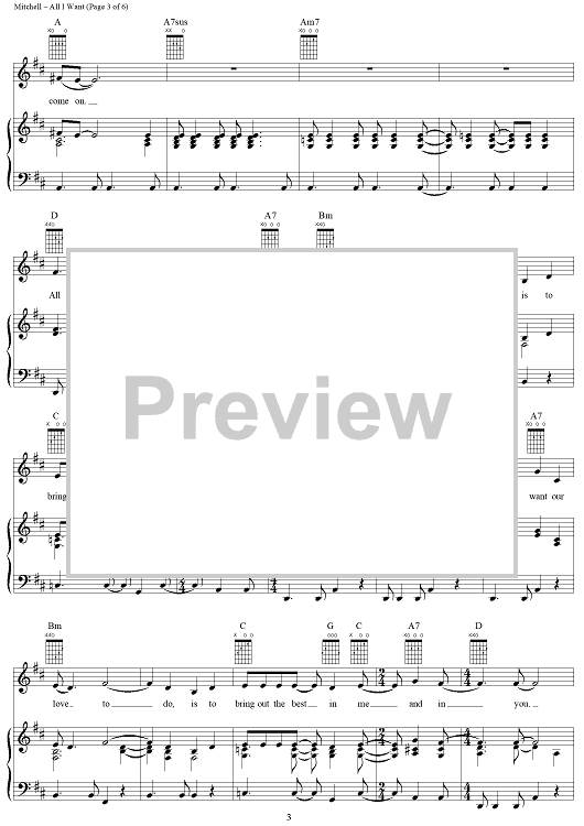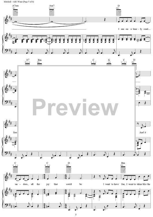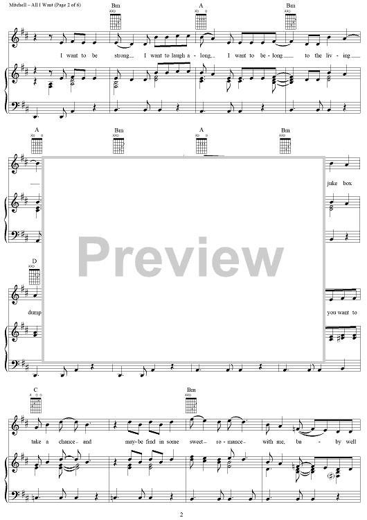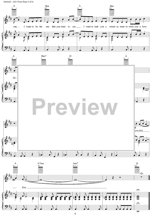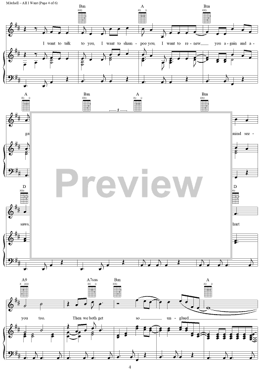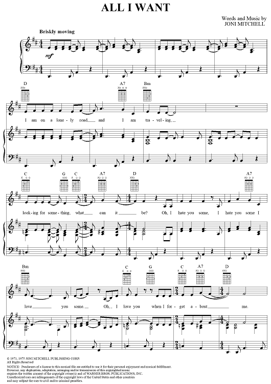 Digital Sheet Music for All I Want by Joni Mitchell scored for Piano/Vocal/Chords; id:120710