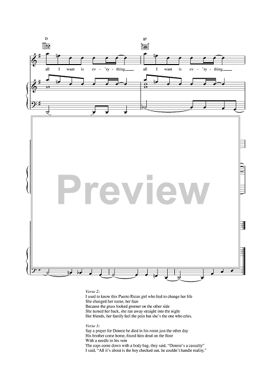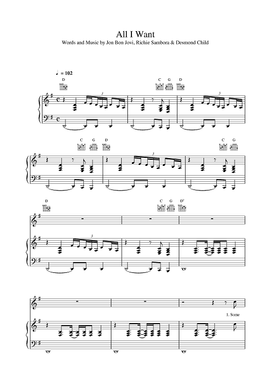 Digital Sheet Music for All I Want by Bon Jovi scored for Piano/Vocal/Chords; id:376019