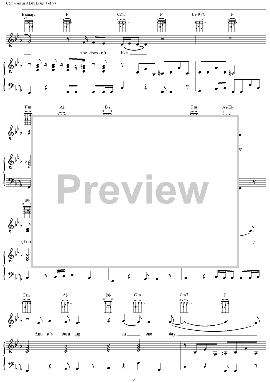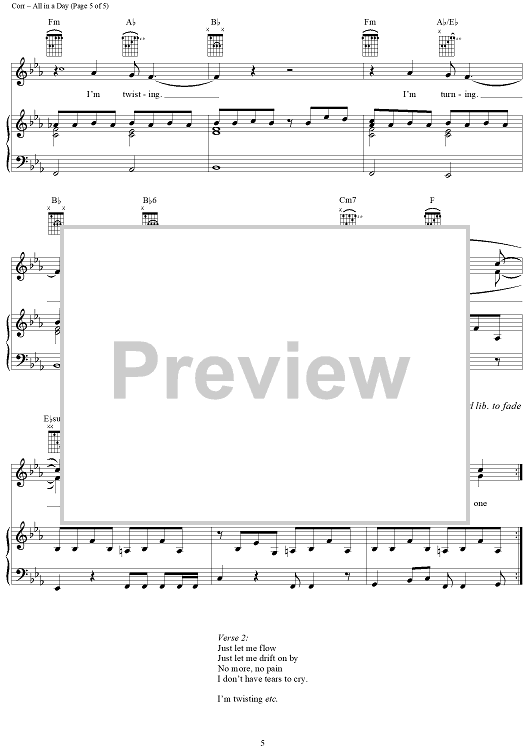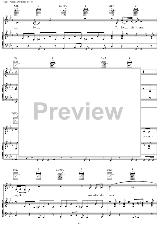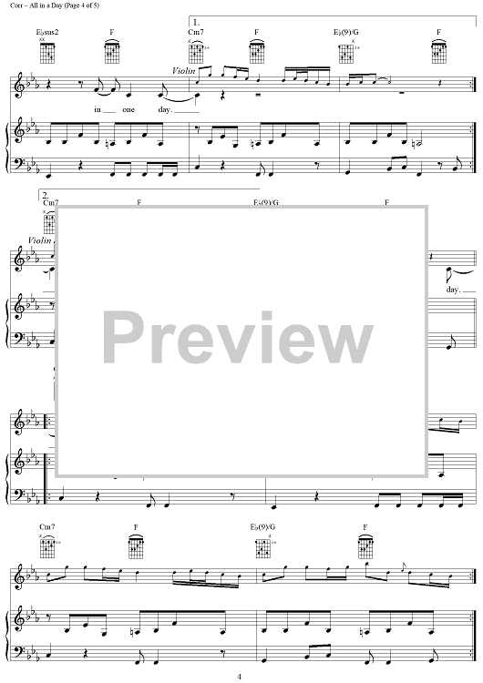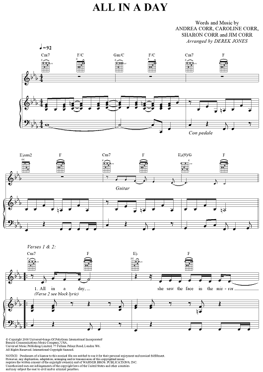 Digital Sheet Music for All in a Day by The Corrs, Derek Jones, Sharon Corr, Caroline Corr, Andrea Corr, Jim Corr scored for Piano/Vocal/Chords; id:287327