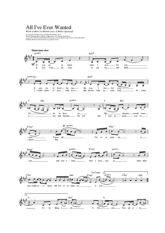 "All I've Ever Wanted" Sheet Music by Mariah Carey