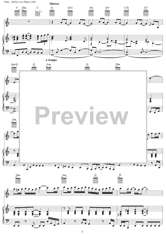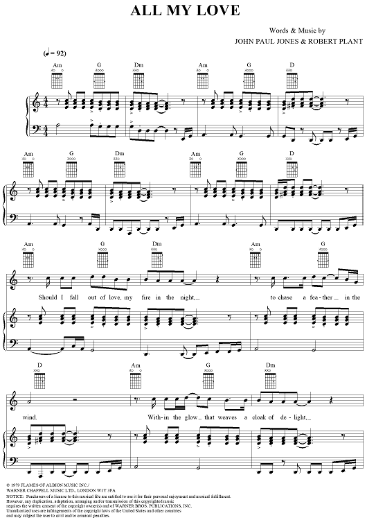Digital Sheet Music for All My Love by John Paul Jones, Led Zeppelin, Robert Plant scored for Piano/Vocal/Chords; id:119970