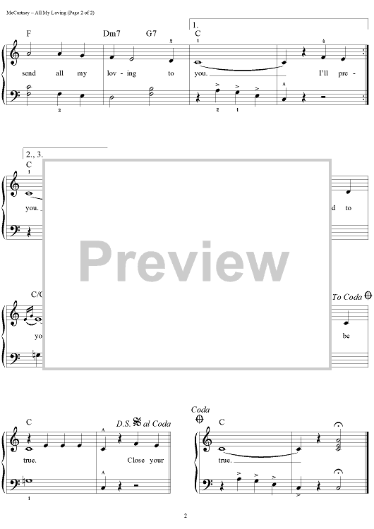 Digital Sheet Music for All My Loving by Paul McCartney, The Beatles, John Lennon scored for Easy Piano/Vocal/Chords; id:448100